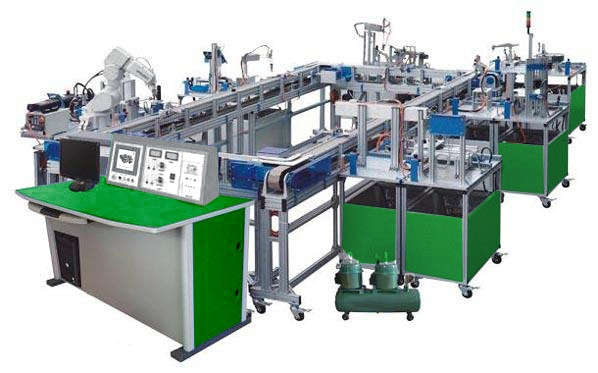 該系統(tǒng)可配置機(jī)械傳動(dòng)裝置上料,四軸機(jī)器人模擬搬運(yùn),六軸機(jī)器人模擬裝配,機(jī)器視覺定位引導(dǎo),直角坐標(biāo)機(jī)器人碼垛產(chǎn)品,各工作站間通過中間循環(huán)過渡輸送線體連通,多種工業(yè)機(jī)器人協(xié)同作業(yè),共同完成了產(chǎn)品的整個(gè)生產(chǎn)過程。該教學(xué)實(shí)訓(xùn)系統(tǒng)的每個(gè)工作站既能獨(dú)立完成特定的功能訓(xùn)練,又能連成一條完整的生產(chǎn)線作為系統(tǒng)集成應(yīng)用訓(xùn)練,集成了PLC編程技術(shù)、氣動(dòng)技術(shù)、傳感視覺技術(shù)、伺服技術(shù)、變頻器技術(shù)、工業(yè)機(jī)器人技術(shù)、現(xiàn)場(chǎng)總線技術(shù)、電機(jī)控制技術(shù)、機(jī)械傳動(dòng)技術(shù)等,可再現(xiàn)柔性自動(dòng)化生產(chǎn)的整套工藝流程。